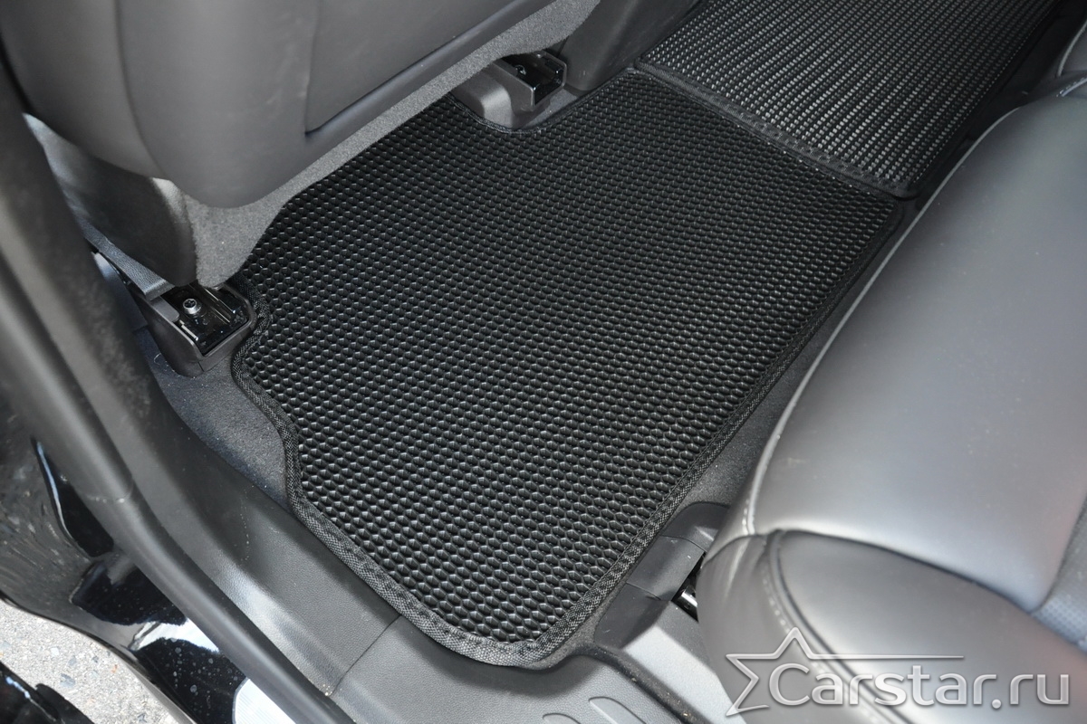 Толщина ковриков EVA составляет 10-12 мм. Глубина ячеек 7-8 мм. Такая толщина ковриков позволяет им служить довольно долго, не протираясь до 3 лет. А благодаря такой глубине ячеек коврик EVA площадью 1 кв.м. способен захватить около 3,5 л жидкости, сохраняя в чистоте вашу обувь и обивку салона.
