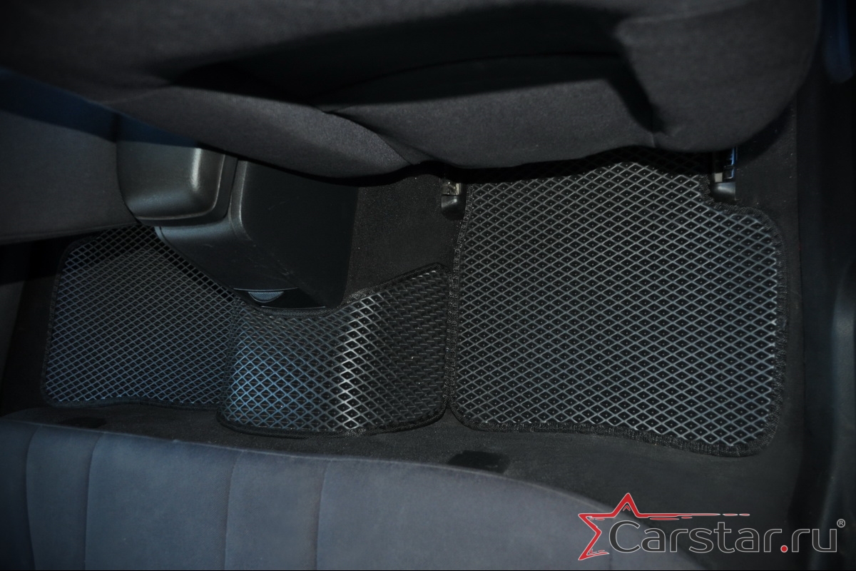 Толщина ковриков EVA составляет 10-12 мм. Глубина ячеек 7-8 мм. Такая толщина ковриков позволяет им служить довольно долго, не протираясь до 3 лет. А благодаря такой глубине ячеек коврик EVA площадью 1 кв.м. способен захватить около 3,5 л жидкости, сохраняя в чистоте вашу обувь и обивку салона.
