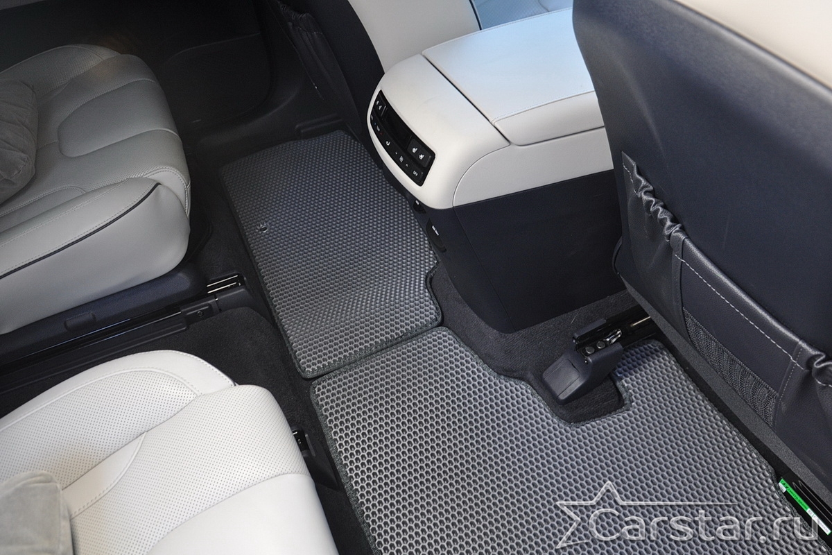 Толщина ковриков EVA составляет 10-12 мм. Глубина ячеек 7-8 мм. Такая толщина ковриков позволяет им служить довольно долго, не протираясь до 3 лет. А благодаря такой глубине ячеек коврик EVA площадью 1 кв.м. способен захватить около 3,5 л жидкости, сохраняя в чистоте вашу обувь и обивку салона.