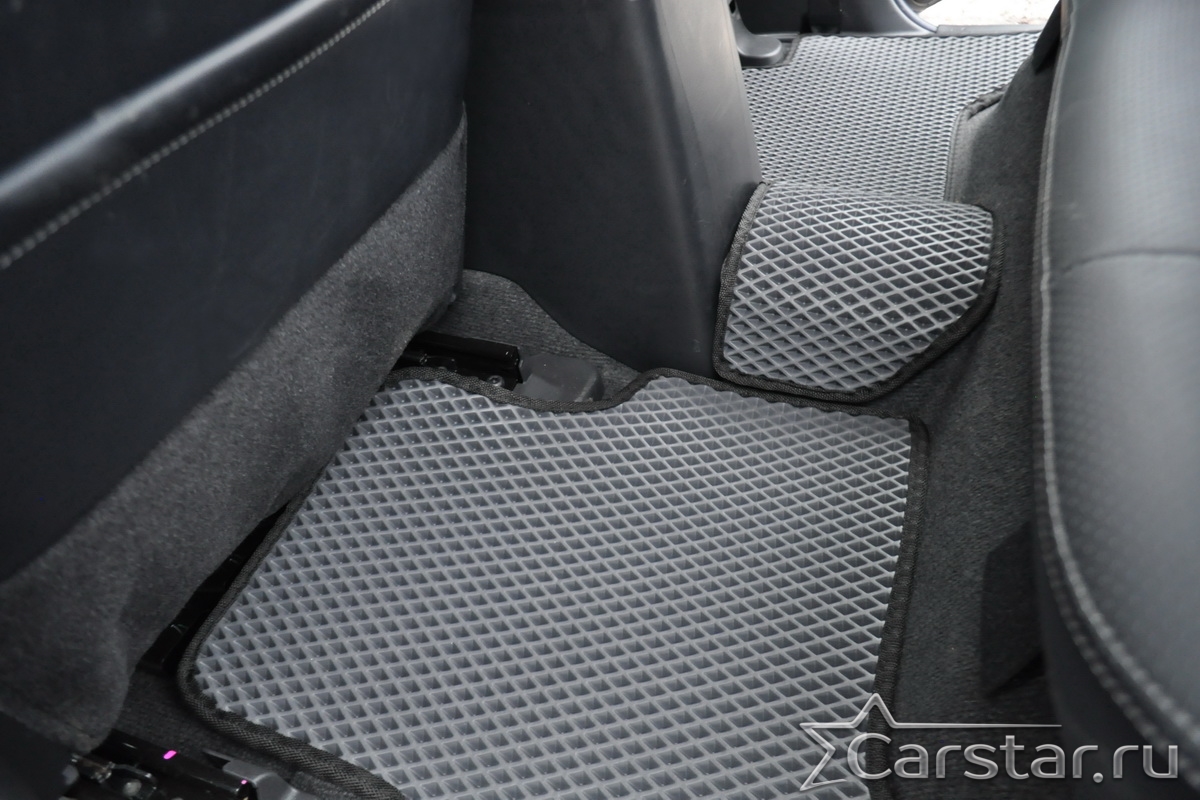 Толщина ковриков EVA составляет 10-12 мм. Глубина ячеек 7-8 мм. Такая толщина ковриков позволяет им служить довольно долго, не протираясь до 3 лет. А благодаря такой глубине ячеек коврик EVA площадью 1 кв.м. способен захватить около 3,5 л жидкости, сохраняя в чистоте вашу обувь и обивку салона.