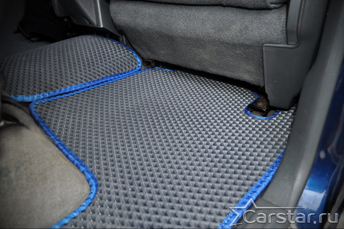 Толщина ковриков EVA составляет 10-12 мм. Глубина ячеек 7-8 мм. Такая толщина ковриков позволяет им служить довольно долго, не протираясь до 3 лет. А благодаря такой глубине ячеек коврик EVA площадью 1 кв.м. способен захватить около 3,5 л жидкости, сохраняя в чистоте вашу обувь и обивку салона.