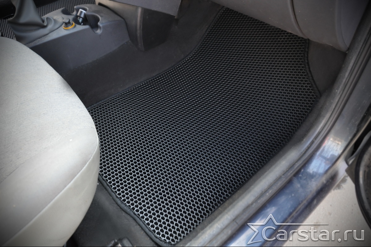 Толщина ковриков EVA составляет 10-12 мм. Глубина ячеек 7-8 мм. Такая толщина ковриков позволяет им служить довольно долго, не протираясь до 3 лет. А благодаря такой глубине ячеек коврик EVA площадью 1 кв.м. способен захватить около 3,5 л жидкости, сохраняя в чистоте вашу обувь и обивку салона.