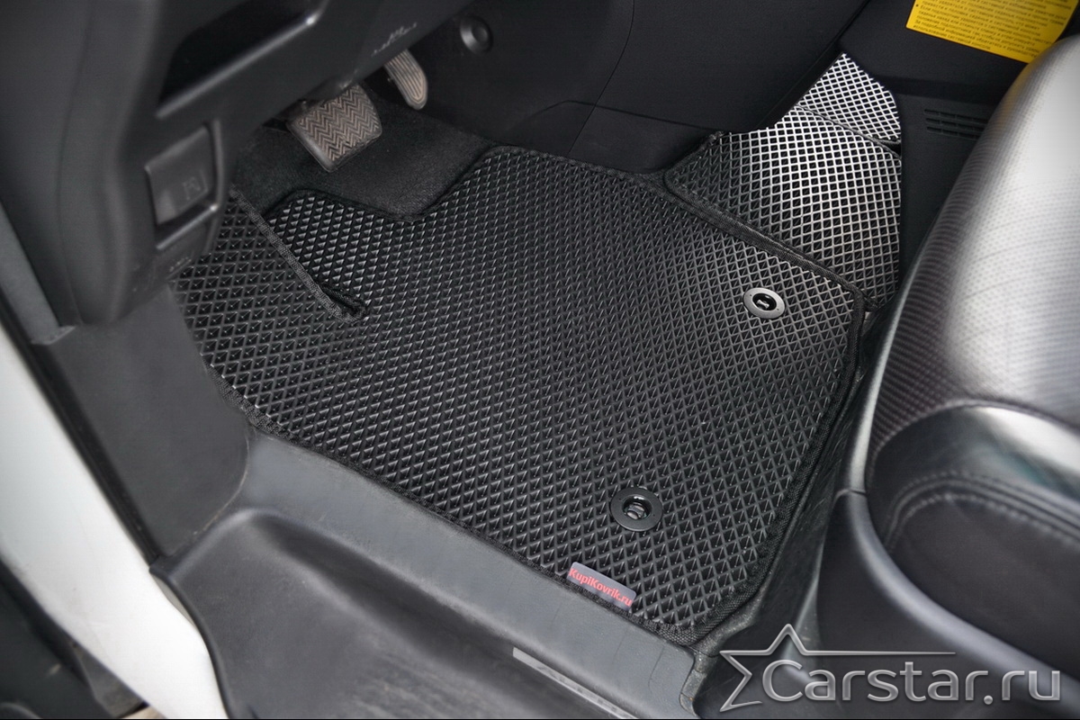 Коврики EVA надёжно крепятся с помощью оригинальных систем фиксации. Благодаря клипсам и липучке коврики защищены от смещений, что обеспечивает комфорт и безопасность вождения. Максимальное удобство также достигается точными, улучшенными лекалами для каждого автомобиля.