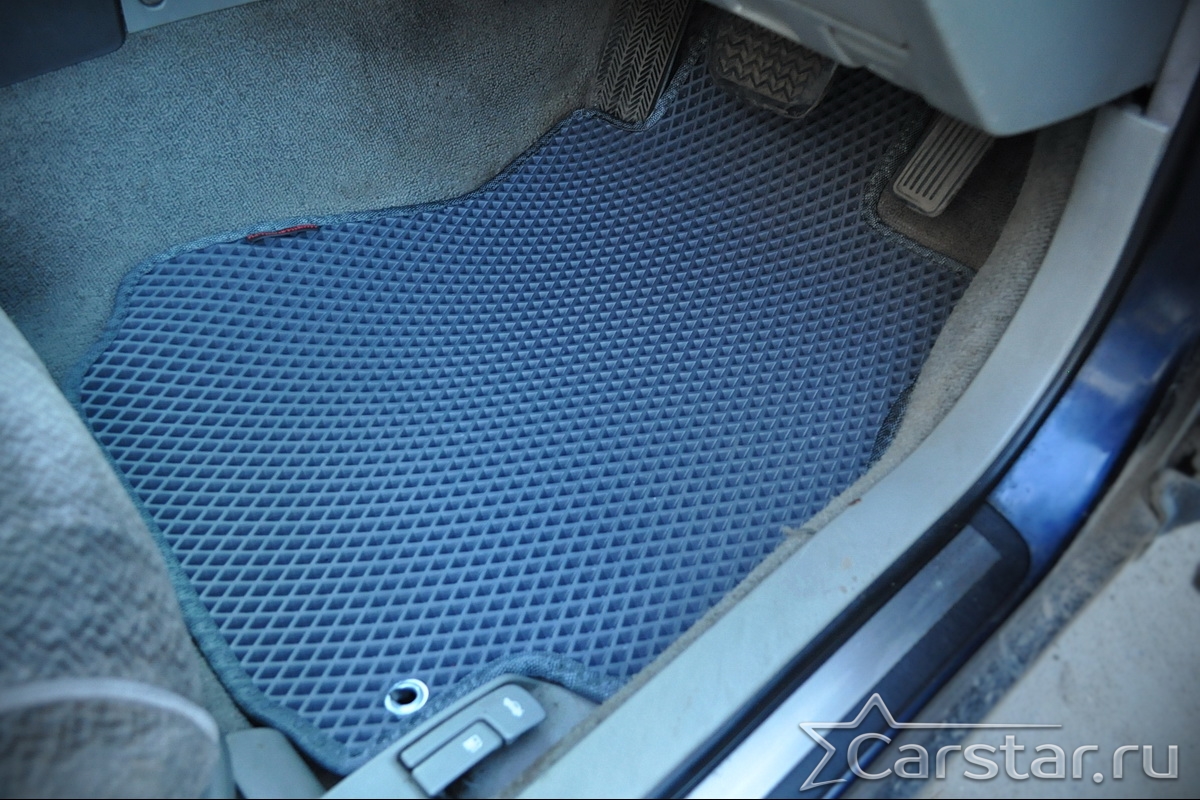 Толщина ковриков EVA составляет 10-12 мм. Глубина ячеек 7-8 мм. Такая толщина ковриков позволяет им служить довольно долго, не протираясь до 3 лет. А благодаря такой глубине ячеек коврик EVA площадью 1 кв.м. способен захватить около 3,5 л жидкости, сохраняя в чистоте вашу обувь и обивку салона.