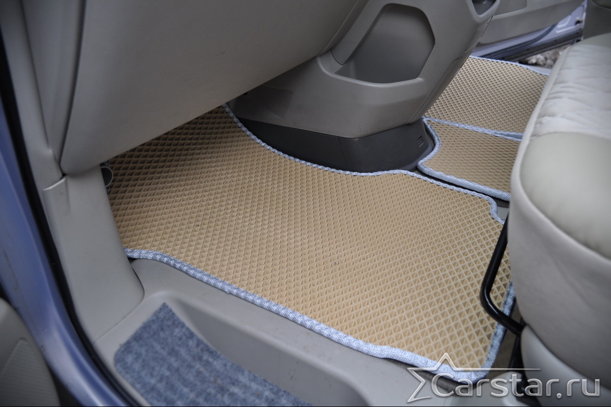 Толщина ковриков EVA составляет 10-12 мм. Глубина ячеек 7-8 мм. Такая толщина ковриков позволяет им служить довольно долго, не протираясь до 3 лет. А благодаря такой глубине ячеек коврик EVA площадью 1 кв.м. способен захватить около 3,5 л жидкости, сохраняя в чистоте вашу обувь и обивку салона.