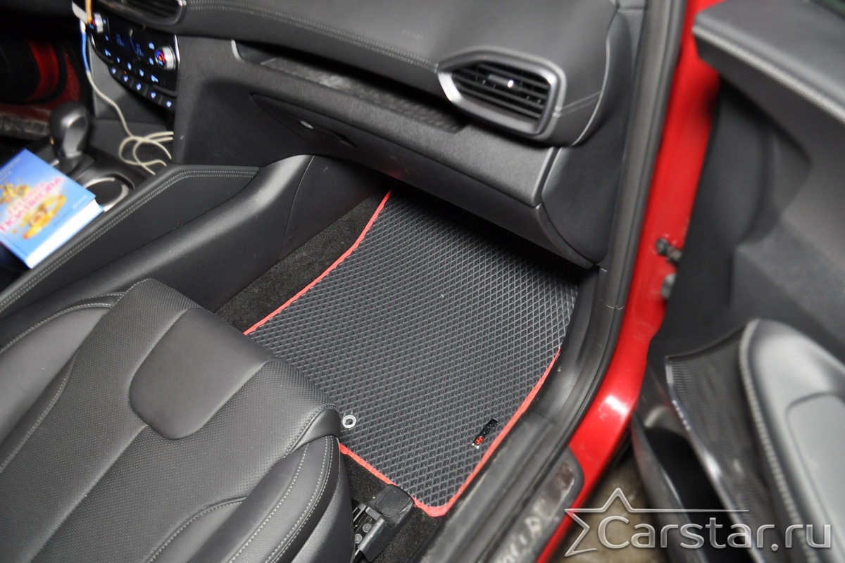 Текстильные автомобильные коврики Hyundai Santa Fe IV 3 ряда (2018-2020) – это классический аксессуар, который обеспечит салону автомобиля неизменную чистоту, порядок и уют. Компания Carstar предлагает изделия из качественного ковролина в сочетании с полипропиленовым основанием на шипах, такая комбинация делает их прочными и водонепроницаемыми.