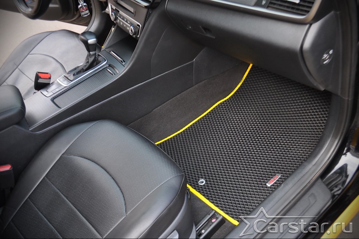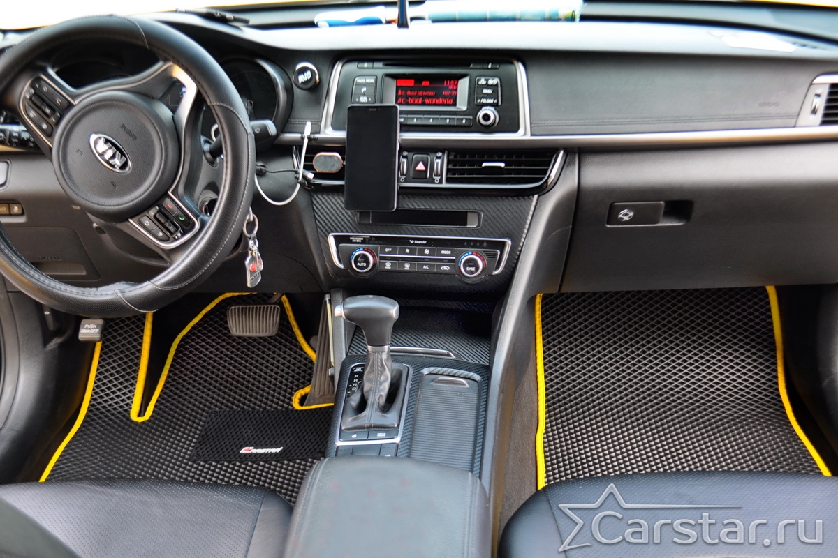 Текстильные автомобильные коврики Kia Optima IV (2015-2020) – это классический аксессуар, который обеспечит салону автомобиля неизменную чистоту, порядок и уют. Компания Carstar предлагает изделия из качественного ковролина в сочетании с полипропиленовым основанием на шипах, такая комбинация делает их прочными и водонепроницаемыми.